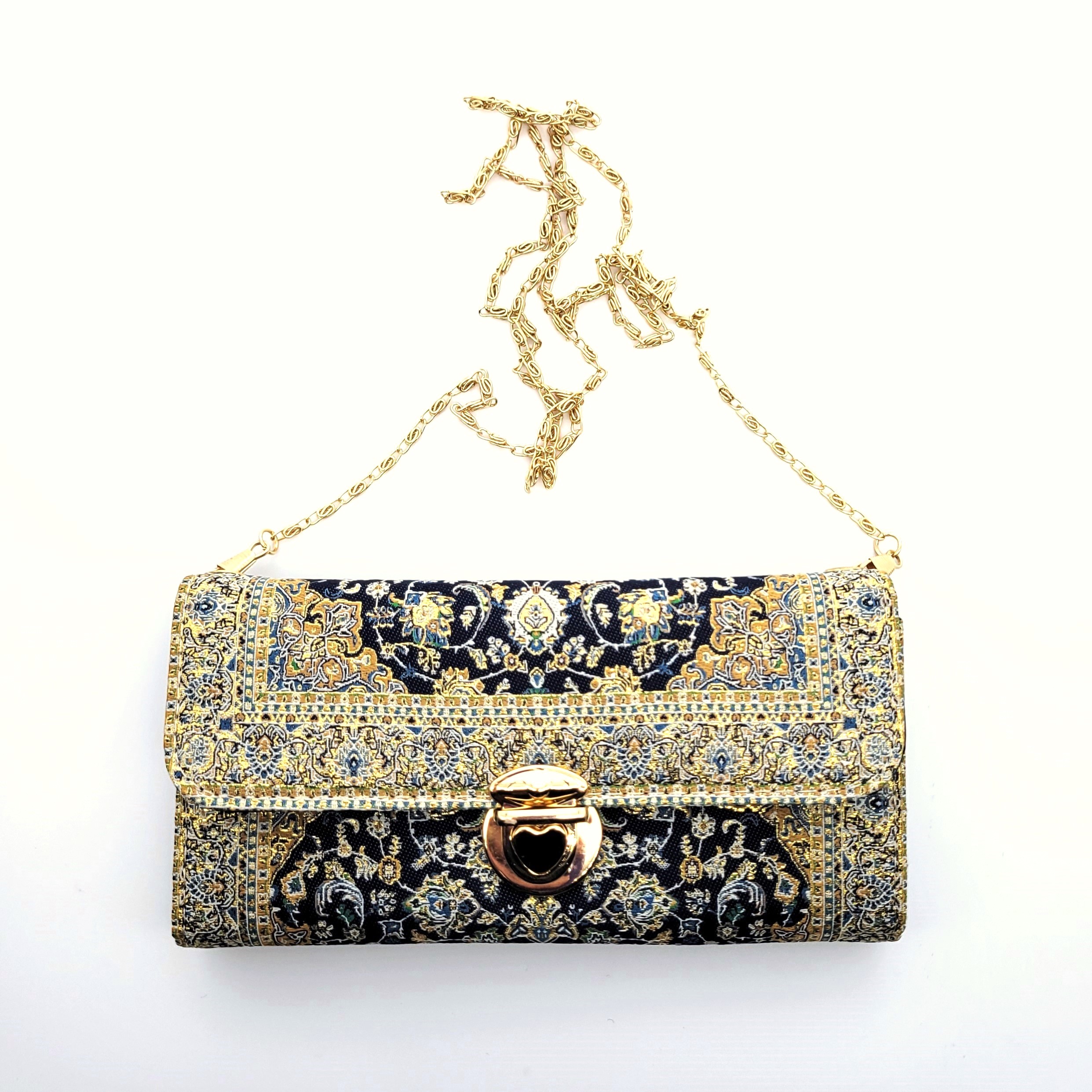 Navy and Gold Turkish Rug Inspired Sling Wallet from Turkey