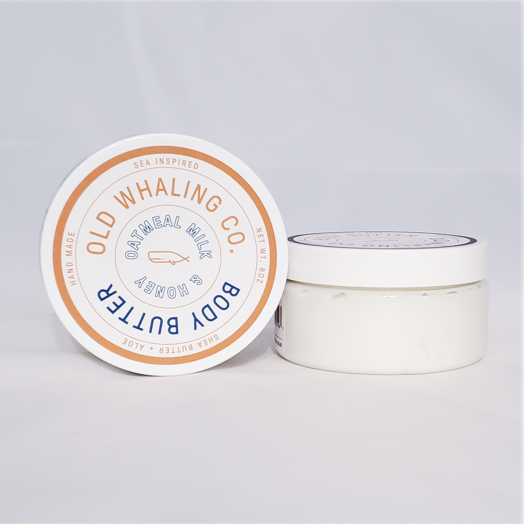 Top: Oatmeal Milk, Honey, Sweet Almond Base: Clove, Tonka Bean, VanillaOld Whaling body butter is a perfect moisturizer for after shower, shaving, sun, or as needed! It is lightweight and soaks in quickly. A little goes a long way and will leave you soft and smooth. The star ingredients of shea butter, organic sunflower oil and organic aloe vera are nourishing and great for all types of skin.
