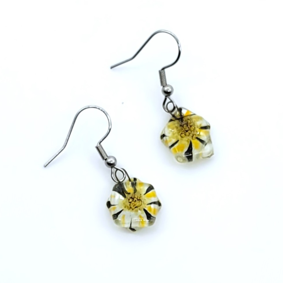 Yellow Daisy Fused Glass Earrings from Chile